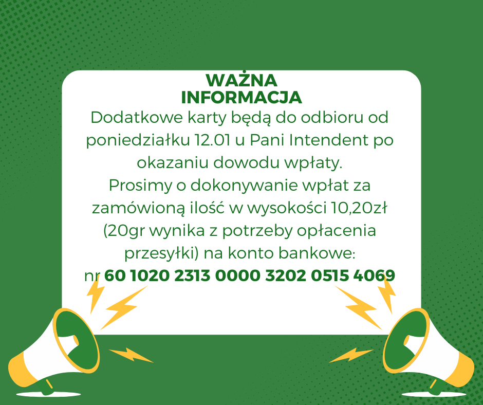 Szczegółowe zasady korzystania z kart zawarte są w Regulaminie korzystania z kart do elektronicznej ewidencji pobytu i wyżywienia dziecka, który wchodzi w życie z dniem 1.01.2026 r.